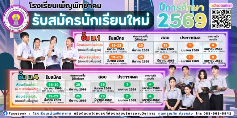 ประกาศโรงเรียนเพ็ญพิทยาคม เรื่อง รับสมัครนักเรียนและนักศึกษาเข้าร่วมโครงการทุนการศึกษา เพื่อขยายโอกาสและพัฒนาประเทศ…
