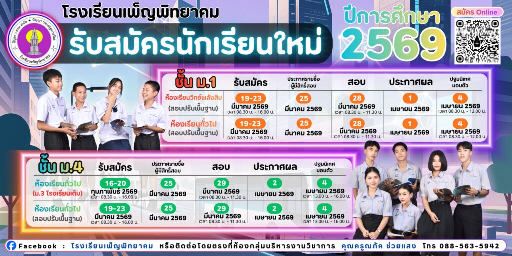 ปฏิทินวิชาการ โรงเรียนเพ็ญพิทยาคม ปีการศึกษา 2568